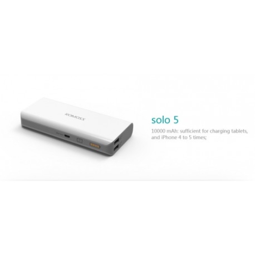پاور بانک ROMOSS SOLO 5 دارای ظرفیت 10000 میلی امپر می باشد که قادر خواهد بود یک باتری 2500 میلی آمپری را حدودا 4 بار شارژ کند. این دستگاه دارای دو خروجی USB میباشد که میتواند همزمان دو دستگاه را به طور همزمان شارژ کند و این دستگاه دارای چراغ ال ای دی جهت نمایش میزان شارژ دستگاه میباشد.
