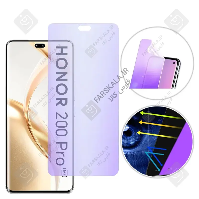 استفاده از محافظ صفحه نمایش نانو آنر 200 پرو مدل هیدرژلی آنتی بلو از بازتاب مستقیم نور و اشعههای مضر ماوراء بنفش به چشمان جلوگیری می کند تا در استفاده های طولانی مدت از گوشی چشم ها در برابر آسیب های ناشی از بازتاب نور صفحه نمایش در امان باشند و دچار خستگی چشم نشوید .