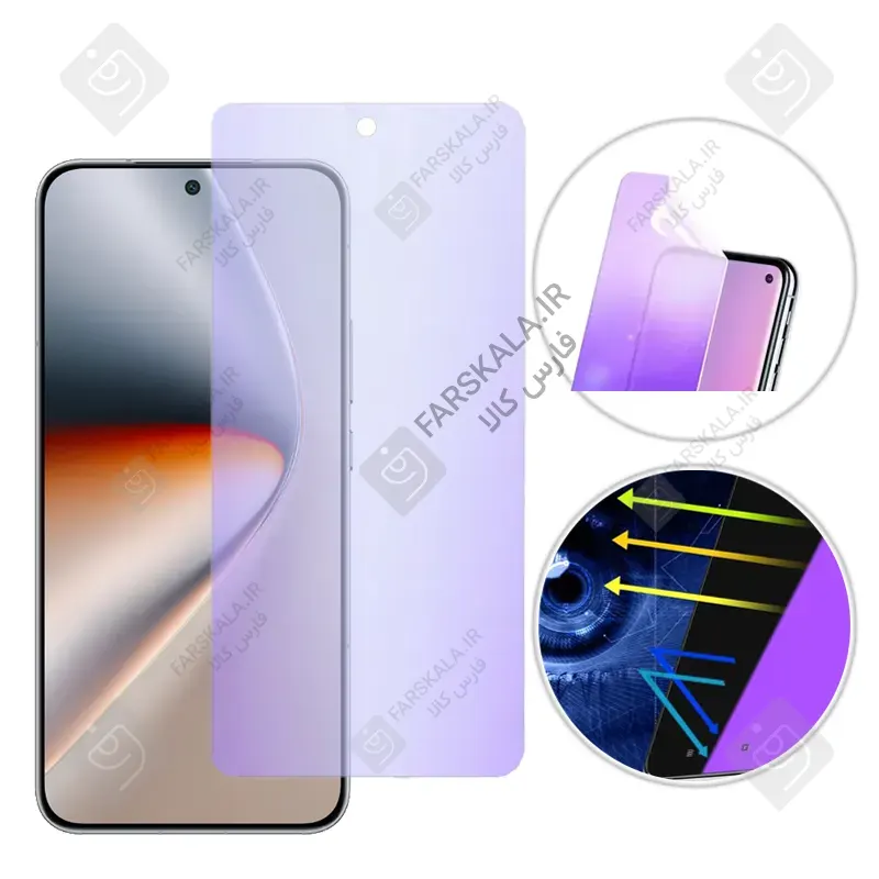 محافظ صفحه نانو هیدروژلی Anti Blue گوشی Honor GT Pro این محافظ صفحه به صورت انعطاف پذیر طراحی شده و از ضخامت کمی برخوردار است که سبب می شود نسبت به سایر محافظ های شیشه ای کمترین تغییر در کیفیت صفحه نمایش و لمس گوشی به وجود بیاید و از ایجاد خط و خش بر روی صفحه نمایش گوشی جلوگیری کند .