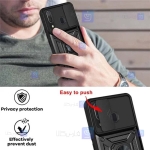 ویژگی بزرگ قاب گوشی Samsung Galaxy A20 مدل ضد ضربه نسبت به سایر قاب ها محافظت ویژه از لنز گوشی می باشد در قسمت پشت قاب سامسونگ Samsung Galaxy A20 یک بخش متحرک وجود دارد که مانند یک درپوش کشویی روی دوربین گوشی Samsung Galaxy A20 را می پوشاند. در صورت نیاز شما خیلی راحت می توانید این محافظ لنز کشویی را کنار زده و از دوربین بدون هیچ مشکلی استفاده کنید توجه داشته باشید که حتی در صورت کنار زدن محافظ کشویی لنز ها به صورت کامل محافظت میشوند چرا که در این بخش قالبی دقیقا به فرم لنز دوربین طراحی شده که به خوبی از دوربین پشت محافظت می کند البته روی لنز ها برش های دقیقی تعبیه شده است که به هیچ عنوان در کارکرد دوربین گوشی محدودیت ایجاد نمی کند.