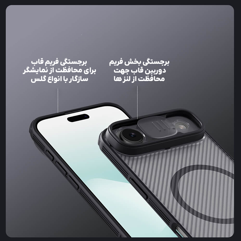 یکی از جدید ترین کاور های تولید شده توسط برند نیلیکن که به صورت نیمه شفاف تولید شده است قاب دودی مگنتی نیلکین CamShield Pro Magnetic Clear Case گوشی آیفون 17 ایر میباشد که به صورت چند لایه با استفاده از مواد پلی کربنات سخت دودی در بخش پشتی و سیلیکون نرم در دور تا دور قاب ساخته شده است تا در کنار ضخامت مناسب و استاندارد بالاترین عملکرد دفاعی را داشته باشد .
