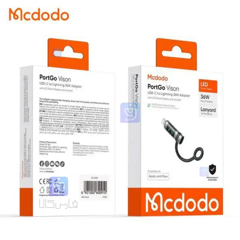 - حداکثر توان خروجی 36 وات - دارای نمایشگر دیجیتال - انتقال همزمان شارژ و داده - طراحی بسیار کوچک و سبک- برندMcdodo