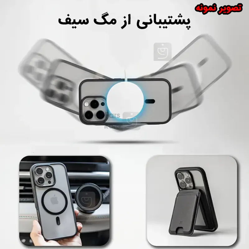 ویژگی اصلی این محصول پشتیبانی از مگ سیف یا شارژ بی سیم می باشد به گونه ای که بدون نیاز به در آوردن گوشی از قاب می توانید با اتصال مگ سیف گوشی خود را به صورت بی سیم شارژ کنید همچنین می توانید بدون اضافه کردن قطعه فلزی جداگانه قاب را به راحتی به هولدر های مگنتی متصل کنید.