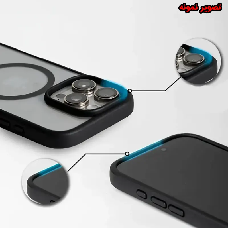 بخش فریم لنز در این قاب مگ سیف به صورت برجسته طراحی شده اند تا زمانی که گوشی را به پشت بر روی سطوح صاف قرار می دهید، هیچ خط و خشی رو لنز گوشی ایجاد نشود و از آسیب رسیدن به آن ها جلوگیری شود.