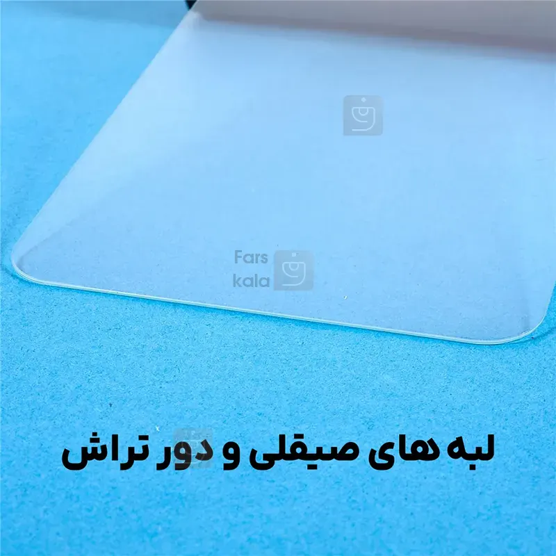 ظاهر کاملا شفاف این گلس سبب شده تا سطح پوشش گلس کاهش پیدا کند و بخش های خمیده صفحه نمایش توسط این محصول پوشیده نشود چرا که در این صورت دور تا دور گلس هوا و حباب ایجاد می شود و سبب بلند شدن گلس از روی صفحه نمایش می شود که برای جلوگیری از بروز این مشکل سایز گلس کمی کوچکتر اندازه گیری شده است تا از ایجاد هوا در دور تا دور گلس جلوگیری شود، این ابعاد یک مزیت نیز دارد چرا که به دلیل پوشیده نشدن لبه های خمیده نمایشگر می توانید از این گلس با هر نوع قاب و کاوری حتی گارد های 360 درجه به طور همزمان استفاده کنید.