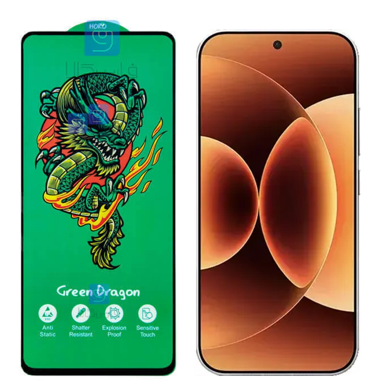 گلس تمام صفحه HORO Green Dragon گوشی شیائومی 17 پرو مکس از مواد شیشه ای درجه یک همراه با فناوری Anti Static ساخته شده است و از درجه سختی 9H بهره می برد و با پوشش کامل نمایشگر گوشی از آن در برابر ضربه و خط و خش محافظت می کند همچنین لبه های گلس حاشیه مشکی رنگ منطبق بر صفحه نمایش گوشی دارد تا در صورت نصب با محدودیت تصویری مواجه نشده و در عملکرد نمایشگر گوشی تداخل به وجود نیاید.