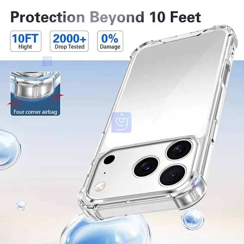 هنگام افتادن گوشی از دست احتمال برخورد چهار گوشه گوشی با زمین بسیار بیشتر از سایر نقاط میباشد از این رو در طراحی قاب آیفون 17 پرو مکس گوشه های قاب تقویت شده است و نسبت به سایر بخش ها برجستگی دارند که همانند کپسول هوا عمل کرده و عملا هر گونه ضربه را به خود جذب کرده و به صورت آنتی شوک عمل می کنند.