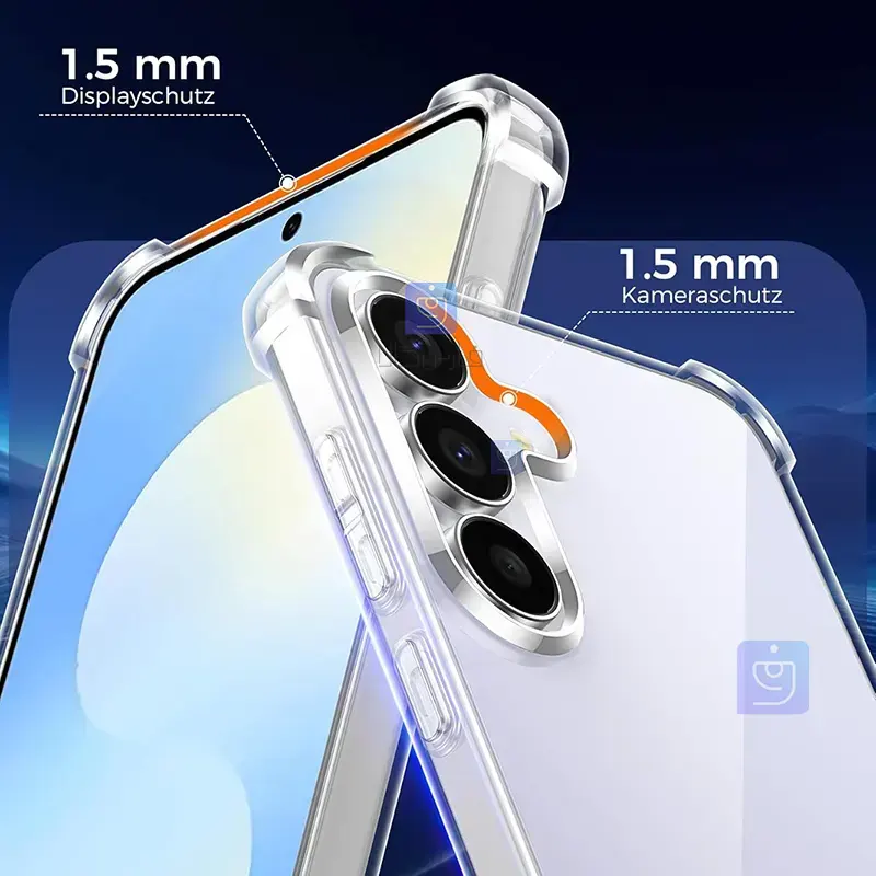 هنگام افتادن گوشی از دست احتمال برخورد چهار گوشه گوشی با زمین بسیار بیشتر از سایر نقاط میباشد از این رو در طراحی قاب گوشی S25 FE گوشه های قاب تقویت شده است و نسبت به سایر بخش ها برجستگی دارند که همانند کپسول هوا عمل کرده و عملا هر گونه ضربه را به خود جذب کرده و به صورت آنتی شوک عمل می کنند.