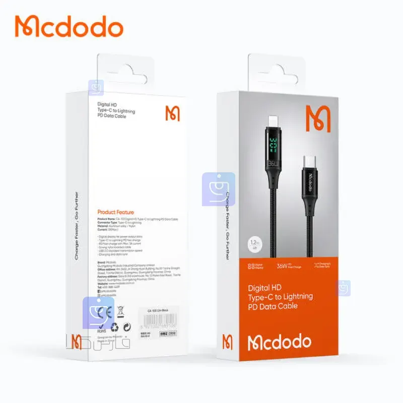 کابل شارژ و انتقال داده 36 وات تایپ سی به لایتنینگ مکدودو مدل MCDODO CA-1030