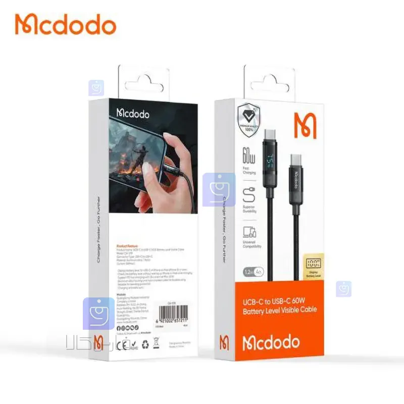 کابل شارژ سریع 60 وات تایپ سی به تایپ سی با نمایشگر دیجیتال مدل MCDODO CA-5780
