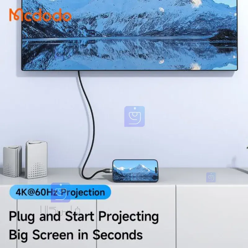 پشتیبانی از انتقال تصویر 4K 60Hz، بدنه مقاوم با روکش مقاوم به گره‌خوردگی و پارگی، سازگاری کامل با گوشی آیفون سری 15 آیفون شرکت اپل،