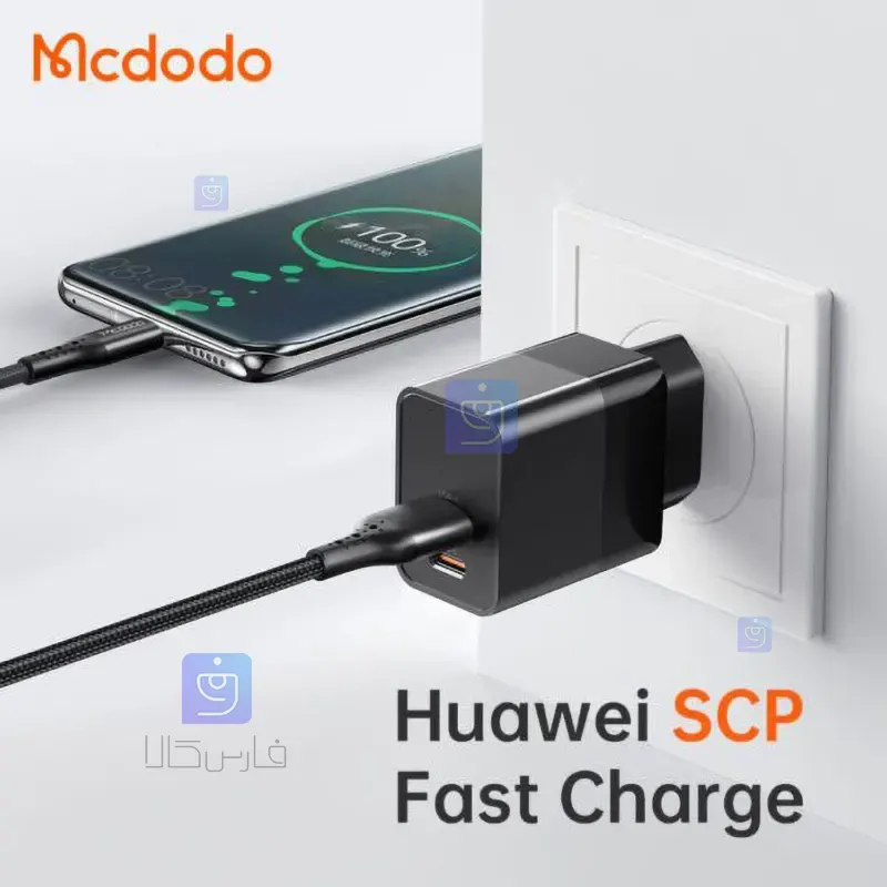 شارژر آداپتور دیواری مدل MCDODO CH-1951، یک شارژر دو پورت با قابلیت شارژ سریع، قابل استفاده برای گوشی های اندروید، آیفون، تبلت، ایرپاد، پاوربانک و سایر دستگاههای دارای پورت USB یا USB-C می باشد.