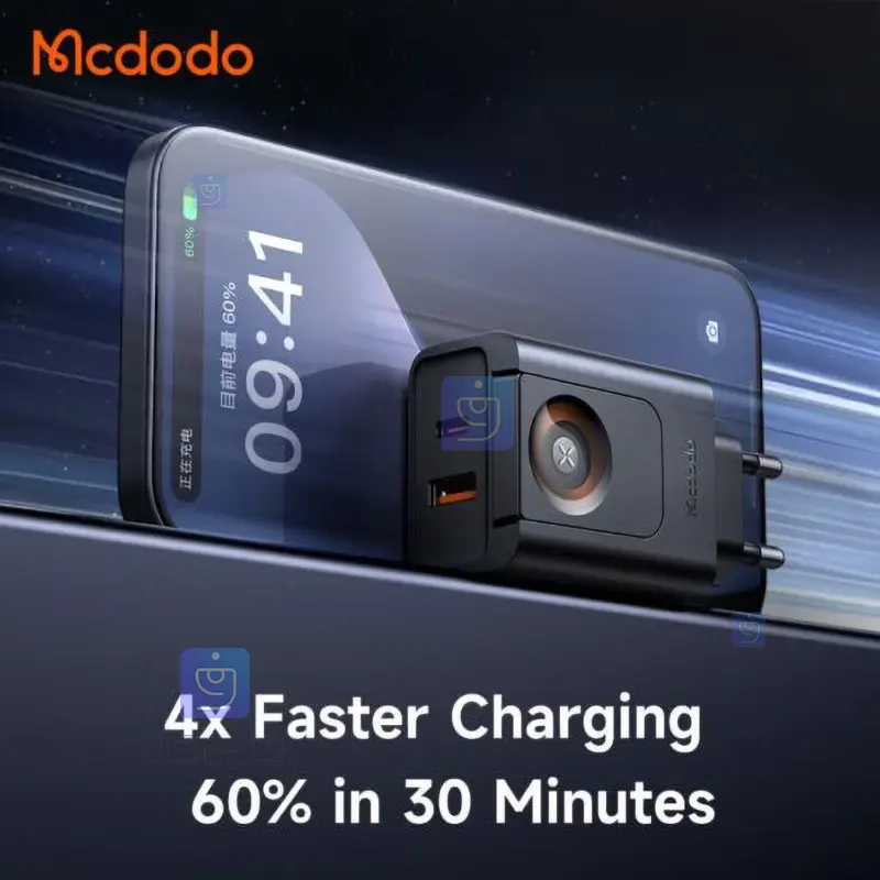 آداپتور شارژ مک‌دودو مدل CH-3700 - به همراه شارژر وایرلس اپل واچ - دارای 2پورت 30 وات - شارژ همزمان دو دستگاه - طراحی جمع‌وجور و سبک