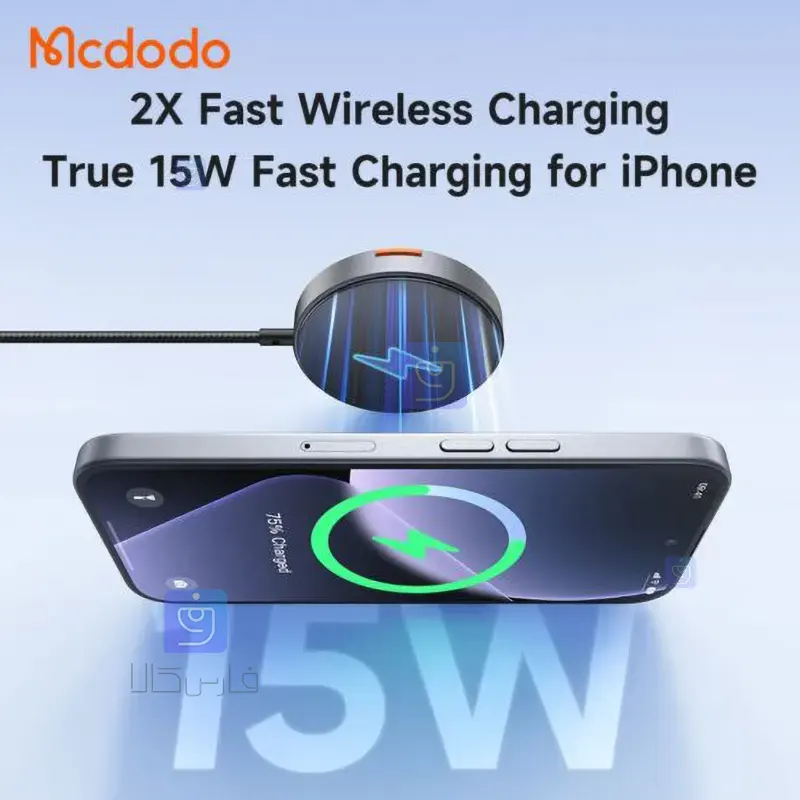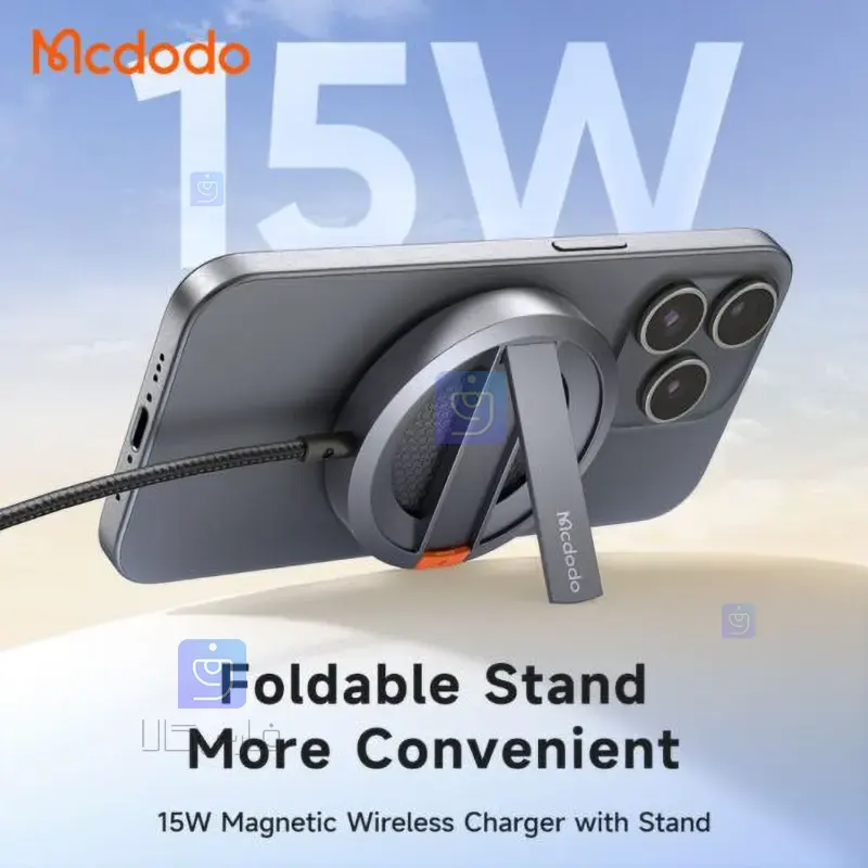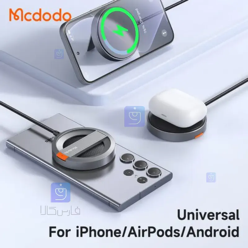 - توان شارژ 15 وات - طراحی تاشو و جمعوجور - دارای سیستم محافظت چندگانه - سازگار با MagSafe و Qi- برندمکدودو (MCDODO)