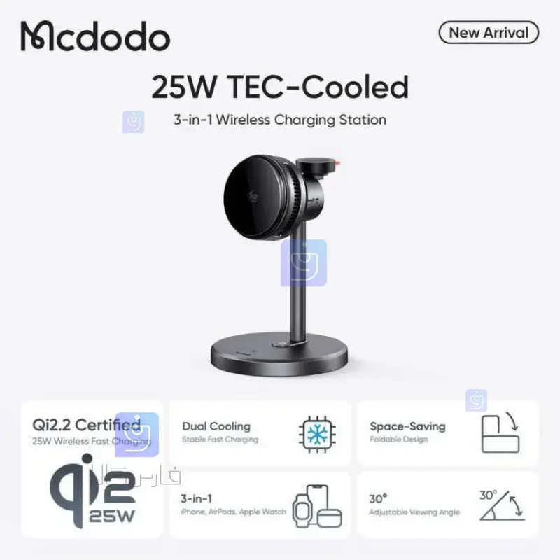 مکدودو CH-6170 یک استند شارژر وایرلس چندکاره، قدرتمند و لوکس است که با بهرهمندی از فن خنککننده قدرتمند، بدنه فلزی مستحکم و پشتیبانی کامل از فناوری MagSafe، انتخابی ایدهآل برای کاربرانی محسوب میشود که به دنبال شارژ سریع، ایمن و امکان شارژ همزمان چند دستگاه هستند. این استند با پشتیبانی از جدیدترین استاندارد شارژ بیسیم Qi2.2 و توان 25 وات برای موبایل، امکان شارژ همزمان گوشی، اپل واچ و ایرپاد را فراهم میکند.
