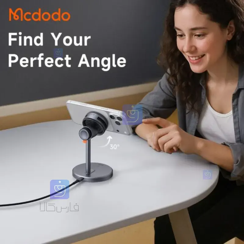 طراحی چندکاره: این محصول علاوه بر شارژر وایرلس، یک هولدر گوشی حرفهای نیز محسوب میشود، که با امکان استفاده از گوشی در حالت عمودی و افقی با تنظیم زاویه تا 30 درجه، آن را برای تماس تصویری، تماشای ویدئو و استفاده رومیزی ایدهآل میکند.
