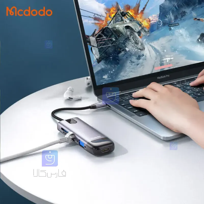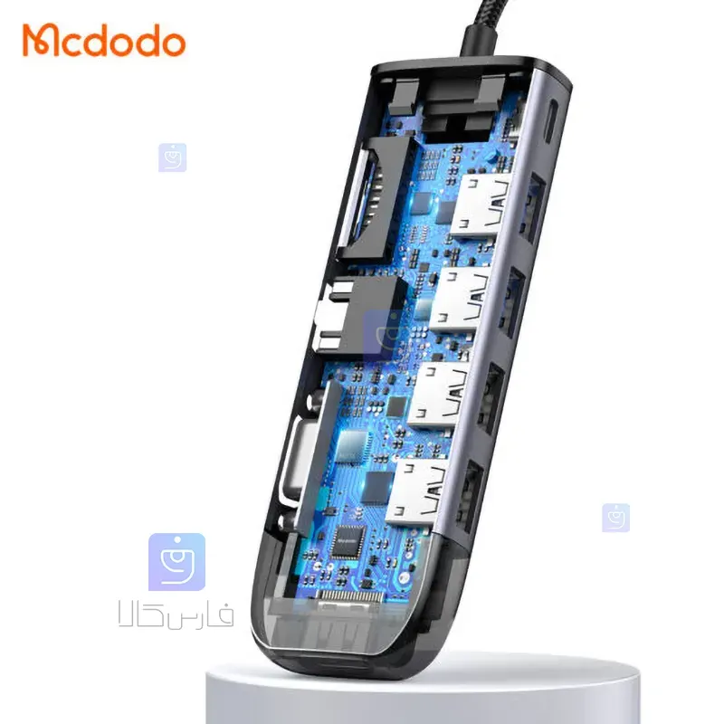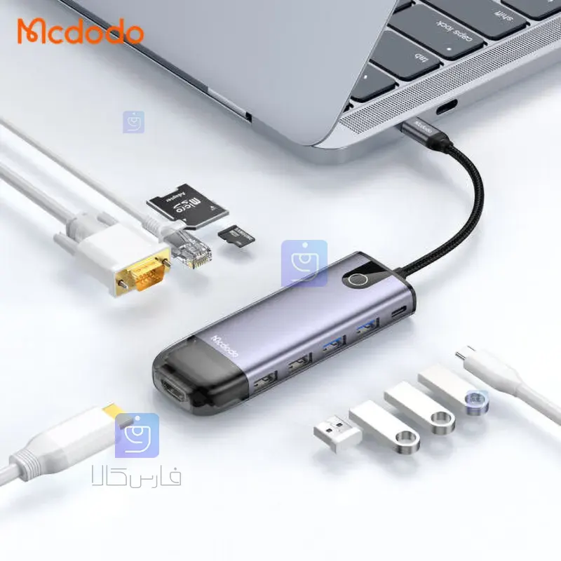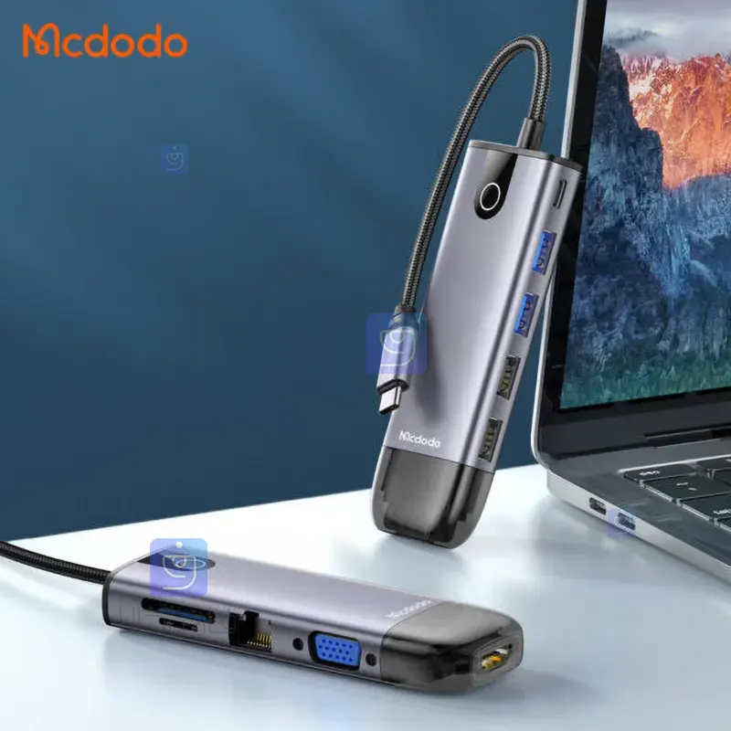 مبدل هاب چندکاره 10 پورت مکدودو مدل HU-7420 یک مبدل قدرتمند برای افزایش درگاههای دستگاههای مجهز به پورت Type-C است. این هاب با ترکیب کامل پورتهای پرکاربرد از جمله HDMI، VGA، LAN، USB و کارتخوان، پاسخگوی نیاز کاربران حرفهای، اداری و خانگی میباشد.