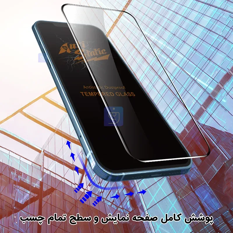 گلس آنتی استاتیک سطحی تماما آغشته به چسب دارد تا هیچگونه هوا و حبابی بعد از نصب در زیر گلس به وجود نیاید، لبه های این محصول به صورت 5D برش خورده اند یعنی گوشه های گلس به صورت منحنی صیقل داده شده و تیزی کناره های گلس به طور کامل گرفته شده است تا نسبت به ضربه و فشار مقاومت بهتری داشته باشد و به سادگی ترک نخورند.