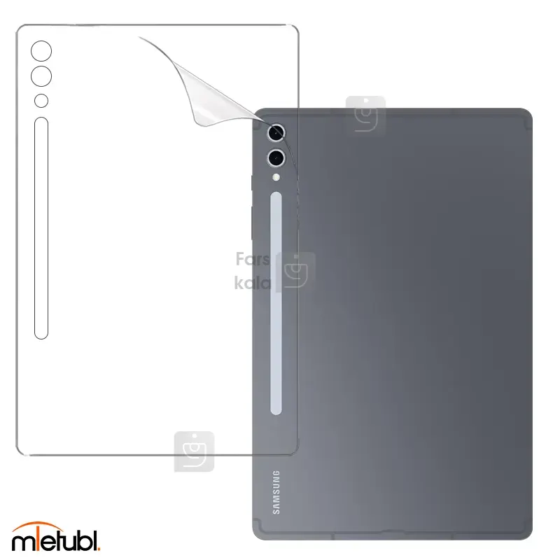 برچسب پشت نانو هیدروژلی میتوبل تبلت سامسونگ تب S11 از مواد نرم پلی اورتان ترمو پلاستیک به صورت شفاف و انعطاف پذیر ساخته شده است و با پوشش کامل و ابعادی منطبق با تبلت و برش های دقیق از درب پشت تبلت در برابر خط و خش محافظت می کند همچنین سطحی تماما آغشته به چسب دارد تا علاوه بر نصب آسان هیچگونه هوا و حبابی بعد از نصب در زیر محافظ باقی نماند .