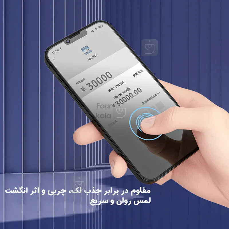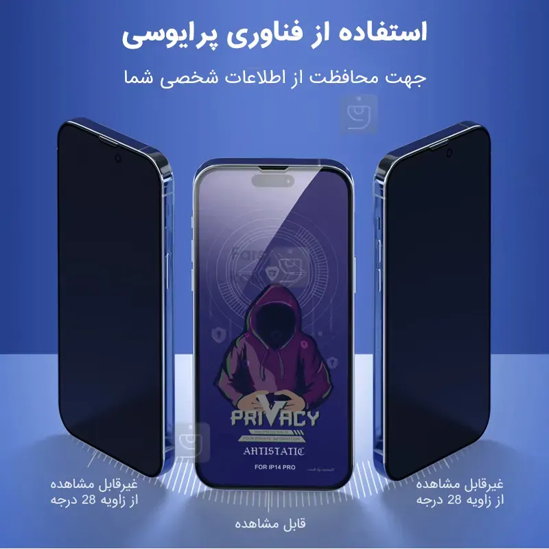 از دغدغههایی که ممکن است برای شما به وجود بیاید استفاده از گوشی در مکان های شلوغ مانند مترو، اتوبوس و نگاه اطرافیان به صفحه نماس گوشی شما باشد که میتواند موجب ناراحتی و ناخوشایندی و یا دزدیده شدن اطلاعات بانکی شما شود و استفاده راحت از موبایلتان را سلب کند به همین دلیل شرکت میتوبل در ساخت گلس Redmi A1 Plus از فناوری پرایوسی استفاده کرده است، این فناوری به گونه ای می باشد که فقط شما می توانید از روبرو صفحه نمایشگر گوشی خود را ببینید در غیر این صورت صفحه گوشی بعد از زاویه 28 درجه به صورت سیاه و تاریک دیده می شود و دیگر قابل مشاهده نمی باشد .