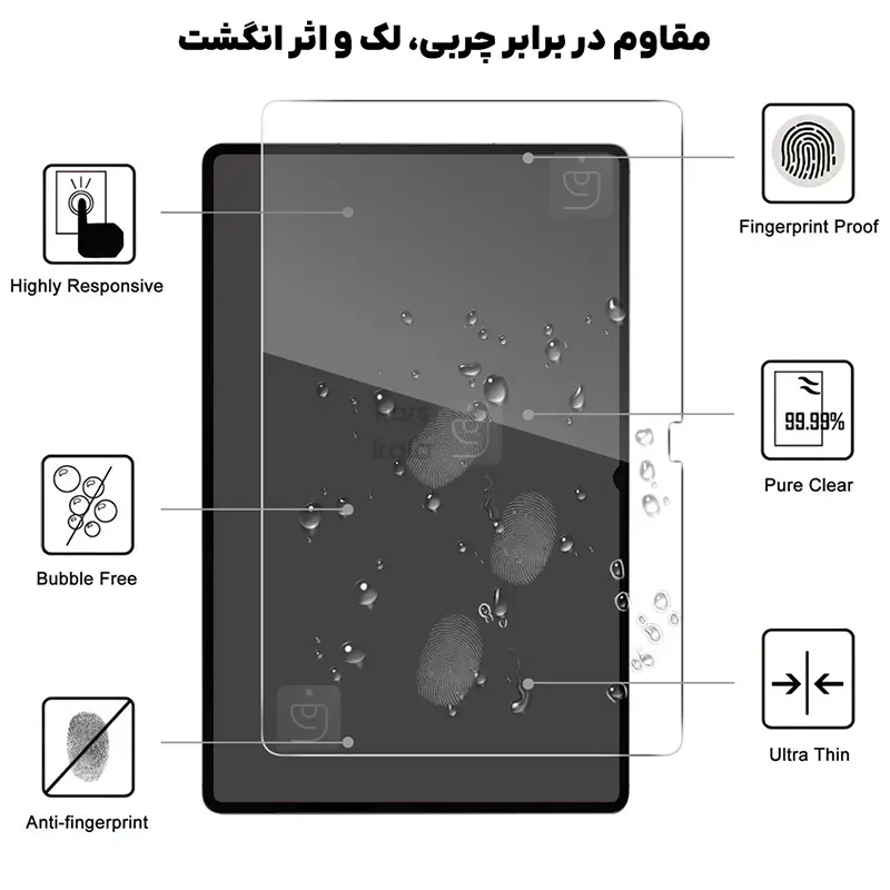 پوشش کامل تمام بخش های نمایشگر تبلت