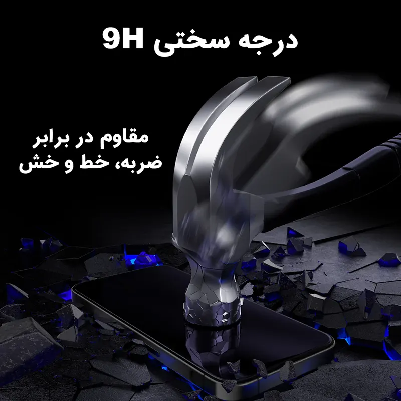 شیشه استفاده شده در ساخت این محصول از درجه سختی 9H بهره میبرد که در نوع خود جزو بهترین ها می باشد تا هنگام قرار گرفتن در مجاورت اجسام تیز مانند کلید از ایجاد خط و خس بر روی گلس جلوگیری شود و بتواند از صفحه نمایش گوشی در برابر ضربه، خط و خش محافظت کند، جالب است بدانید که سختی الماس برابر با 10H و گلس های معمولی 5H می باشد .