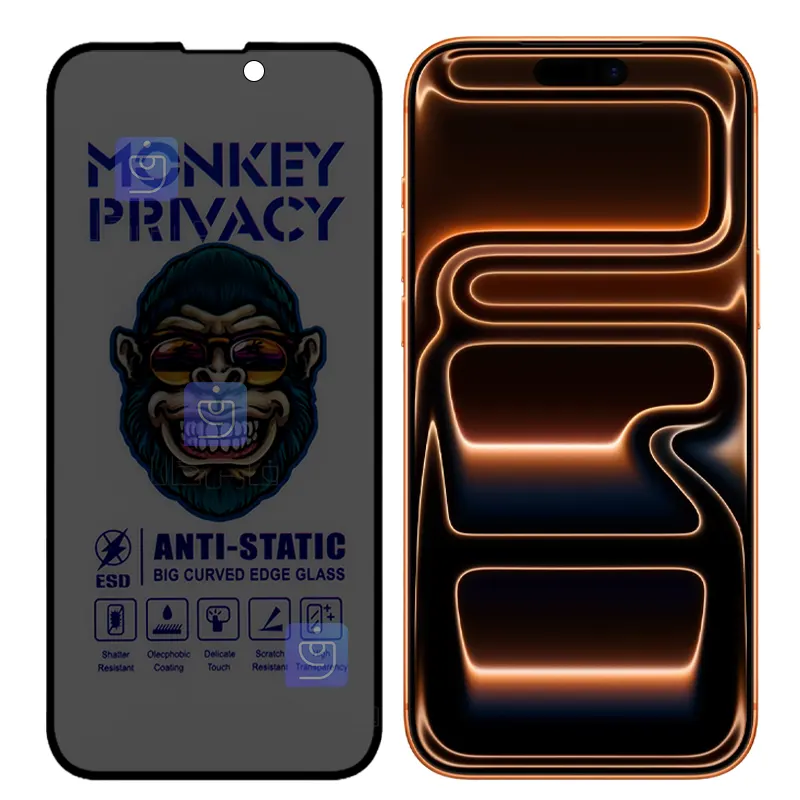 گلس پرایوسی آنتی استاتیک MonKey گوشی آیفون 17 پرو مکس به گونه ای طراحی شده است که به شما اجازه می دهد صفحه نمایش گوشی تا زاویه 28 درجه و مستقیما از روبرو قابل مشاهده باشد و برای کسانی که در اطراف شما هستند صفحه نمایش گوشی غیر قابل رویت باشد همچنین این گلس باعث کاهش بازتاب نورهای آزاردهنده میشود تا در استفاده طولانی مدت از چشمان شما محافظت شود .