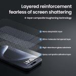 گلس نیلکین CP+ Pro آیفون 16 پرو همراه با ابزار نصب از مواد شیشه ای AGC ژاپن با فناوری نانو Harves ساخته شده است و ضخامتی حدود 0.33 میلیمتر دارد که یکی از بهترین محافظ های شیشه ای در بازار های جهانی به حساب می آید. قابلیت نصب آسان از نقاط مثبت این محافظ می باشد چرا که کافیست تنها محافظ شیشه ای را منطبق بر نمایشگر قرار داده و آن را نصب کنید. گلس نیلکین گوشی آیفون 16 پرو تمامی صفحه نمایش گوشی را پوشش داده و از آن در برابر ضربه و خط و خش محافظت می کند.