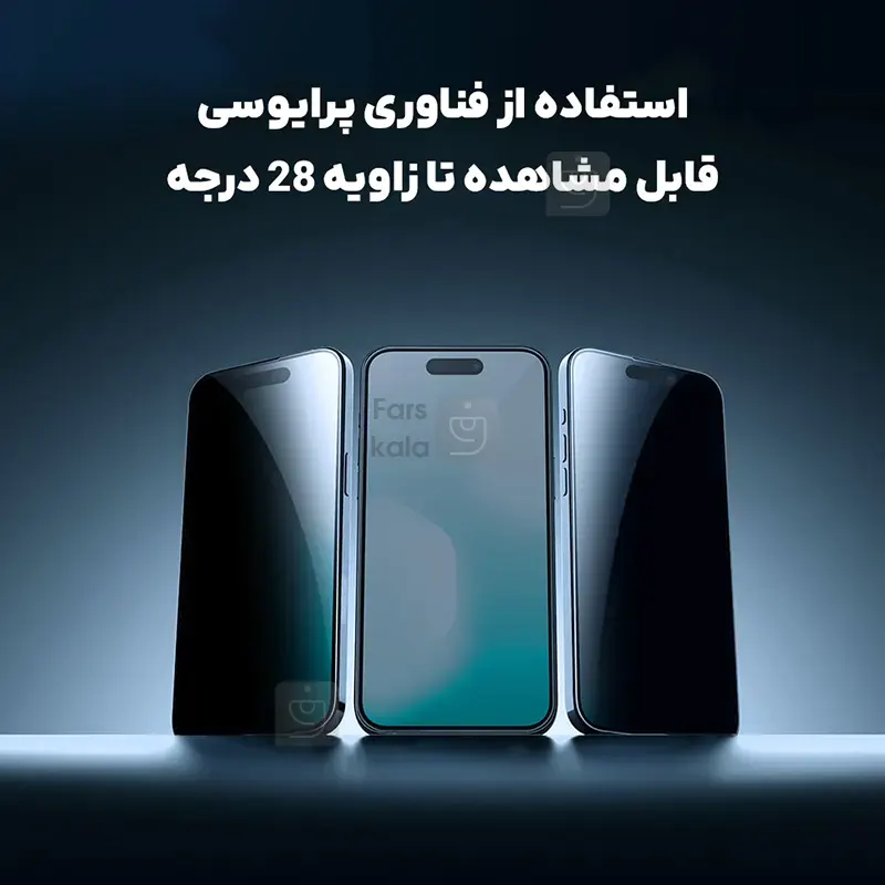 فناوری حریم شخصی استفاده شده در این محصول امنیت بیشتری را برای شما فراهم میکند چرا که فقط تا زاویه 28 درجه صفحه نمایش گوشی قابل دیدن می باشد در غیر این صورت نمایشگر گوشی به صورت سیاه و تاریک دیده می شود همچنین در این گلس از قابلیت Anti-Glare یا همان ضد درخشندگی استفاده شده است، این قابلیت زمانی که نور زیادی به نمایشگر می تابد و دیدن صفحه نمایش گوشی غیر ممکن میشود بسیار کارآمد میباشد .