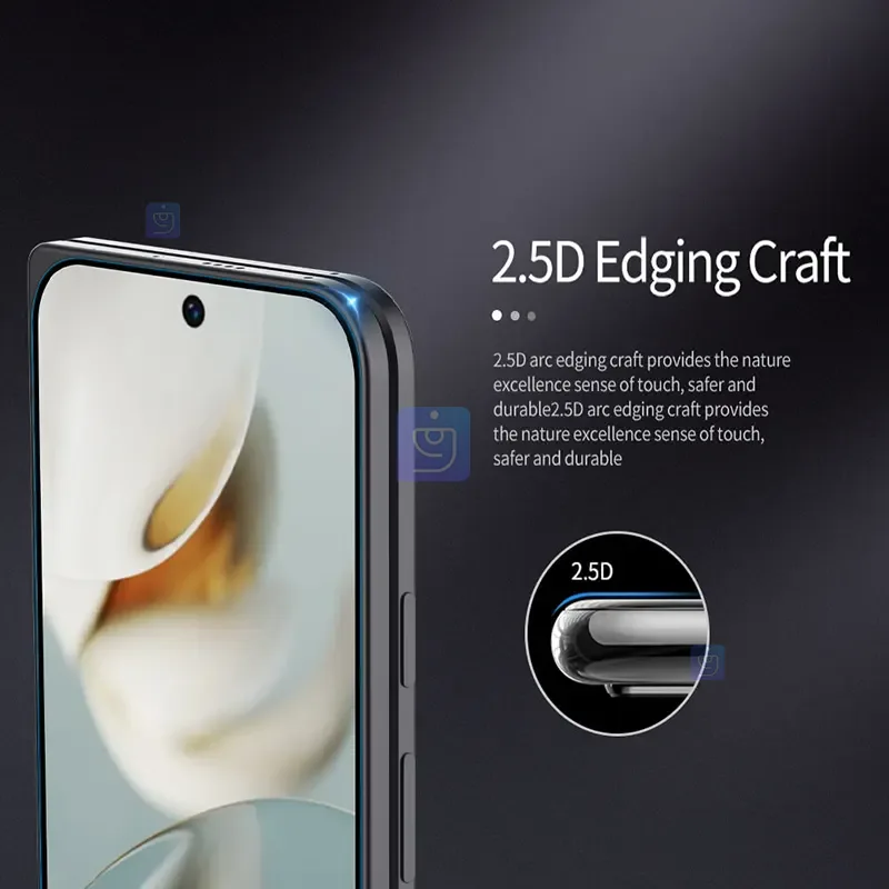 شرکت نیلکین با استفاده از دستگاه برش CNC لبه های این محصول را با انحنای 2.5D صیقل داده است تا لبه های گلس نسبت به ضربه و ترک مقاومت بهتری داشته باشد و با تمامی قاب ها و گارد ها قابل استفاده باشد .