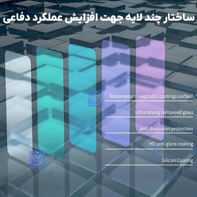 در آخرین لایه این محصول از پوشش اولئوفوبیک استفاده شده است که سبب می شود سطح گلس ضد لک و چربی باشد تا در هنگام استفاده کمترین میزان کثیفی را به خود جذب کند و در صورت کثیف شدن نیز به سادگی با استفاده از دستمال مرطوب تمیز شود همچنین استفاده از این پوشش سبب می شود تا لمس سریع و روانی را تجربه کنید .