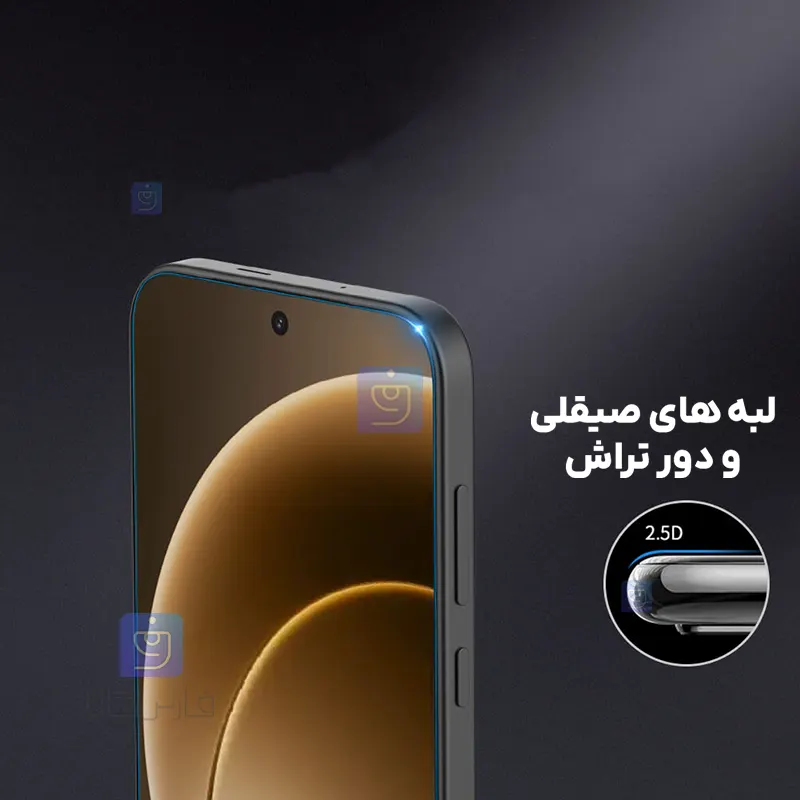 شرکت نیلکین با استفاده از دستگاه برش CNC لبه های این محصول را با انحنای 2.5D صیقل داده است تا لبه های گلس نسبت به ضربه و ترک مقاومت بهتری داشته باشد و با تمامی قاب ها و گارد ها قابل استفاده باشد .