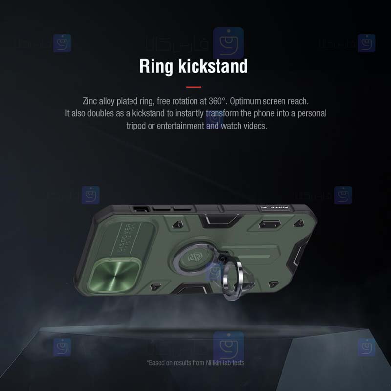 شرکت نیلکین قاب CamShied Armor را برای ورزشکاران طراحی و ساخته است که در برابر ضربه و خط و خش بسیار مقاوم است.این قاب از مواد سازگار با محیط زیست TPU و مواد PC ساخته شده است. عملکرد مقاومت آن در برابر ضربه به روز شده است. حفره های هوای مقاوم در برابر ضربه در چهار گوشه قاب وجود دارد و محافظت قابل اعتماد دستگاه شما را فراهم می کند. این قاب با پوشش کامل پشت و لبه های گوشی را می پوشاند و به دلیل کیفیت بسیار خوبی دارد می تواند از گوشی Apple iPhone 12 Pro Max در برابر آسیب های جدی به گوشی جلوگیری می کند.به لحاظ نوع جنسی که دارد این قاب از میان دست لیز نمی خورد و گوشی کاملا ایمن داخل دست قرار می گیرد.قابل ذکر است که در این مدل از قاب نیلکین قسمت لوگوی اپل برش داده نشده است.