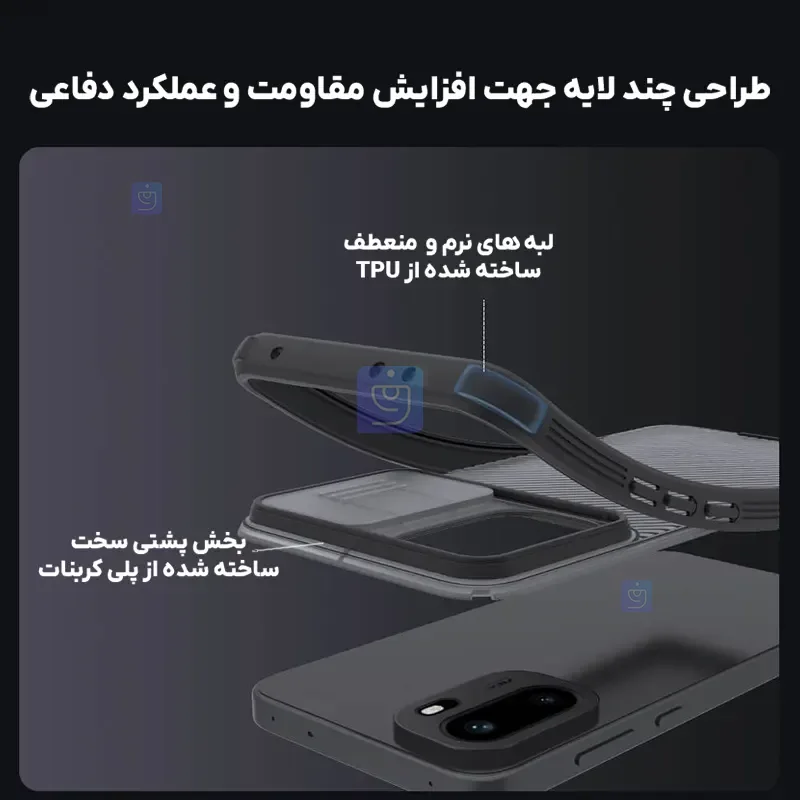 این محصول به صورت چند لایه ساخته شده است به این صورت که در ساخت بخش فریم آن از مواد نرم و منعطف TPU و در ساخت قسمت پشتی آن از مواد پلی کربنات سخت PC استفاده شده است که علاوه بر افزایش دوام و مقاومت قاب عملکرد دفاعی آن را نیز افزایش داده است .