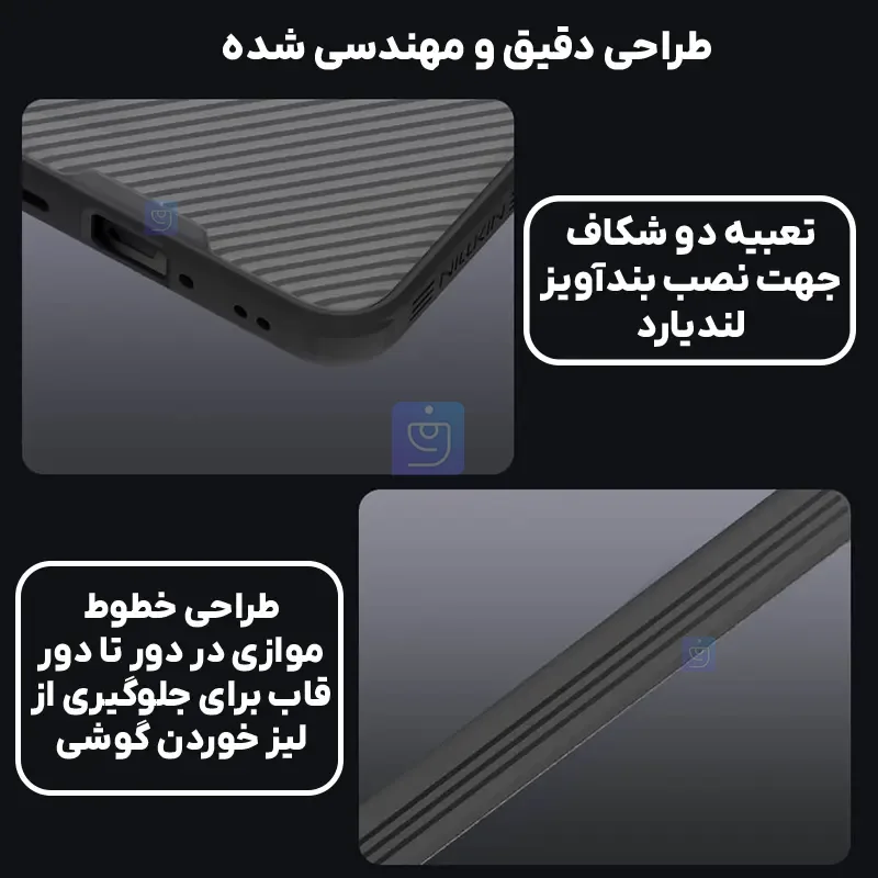 برند نیلکین که یکی از قوی ترین تولید کننده های لوازم جانبی موبایل میباشد در طراحی قاب ضد ضربه کمشیلد پرو کلیر نیز مانند سایر محصولات خود کاملا مهندسی شده عمل کرده و قسمت پورت ها و رابط های کاربری را با استفاده از شیار های مناسب توسط دستگاه های CNC با بالاترین دقت برش داده است تا کاربر هنگام استفاده از قاب دچار محدودیت نشود همچنین در بخش فریم قاب از خطوط موازی استفاده شده است تا با ایجاد اصطکاک از لیز خوردن گوشی جلوگیری شود .