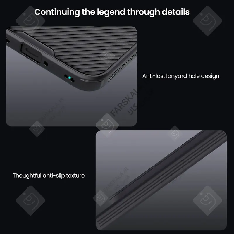برند نیلکین که یکی از قوی ترین تولید کننده های لوازم جانبی موبایل میباشد در طراحی گارد کمشیلد پرو نیز مانند سایر محصولات خود کاملا مهندسی شده عمل کرده و قسمت پورت ها و رابط های کاربری را با استفاده از شیار های مناسب توسط دستگاه های CNC با بالاترین دقت برش داده است تا کاربر هنگام استفاده از قاب دچار محدودیت نشود همچنین روی دکمه های گوشی را نیز با استفاده از پوششی نرم و برجسته پوشانده است تا در استفاده بلند مدت دکمه های افزایش / کاهش صدا گوشی از بروز هر گونه خط، خش و ضربه در امان بمانند .