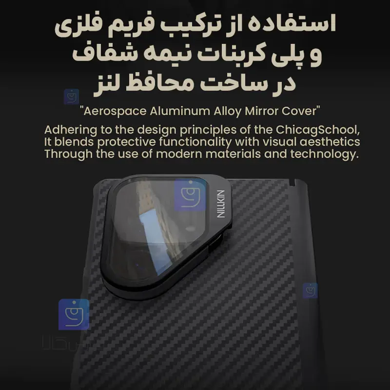 برند نیلکین برای محافظت از دوربین پشتی گوشی از یک محافظ با فریم فلزی همراه با پوششی نیمه شفاف که از مواد سخت پلی کربنات ساخته شده استفاده کرده است که این بخش نسبت به سایر بخش های قاب به صورت برجسته طراحی شده است تا هنگام قرار دادن گوشی روی سطوح مختلف حتی در صورت باز بودن این بخش از برخورد لنز ها و ایجاد خط و خش بر روی آنها جلوگیری شود البته نگران ایجاد محدودیت توسط این بخش نباشید چرا که به سادگی باز و بسته میشود تا تداخلی در عملکرد دوربین گوشی به وجود نیاورد .