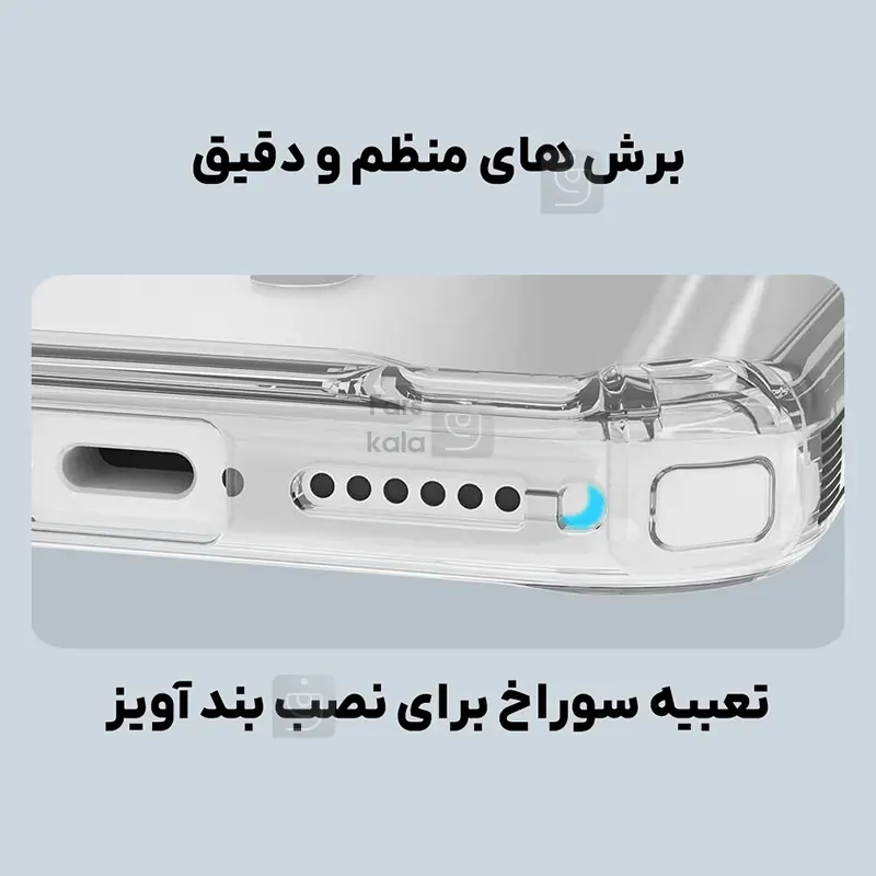 برش دقیق : شرکت نیلکین در طراحی قاب گوشی Apple iPhone 17 Pro کاملا مهندسی شده عمل کرده و قسمت پورت ها و رابط های کاربری را با استفاده از شیار های مناسب توسط دستگاه CNC با بالاترین دقت برش داده است تا کاربر در هنگام استفاده دچار محدودیت نشود .