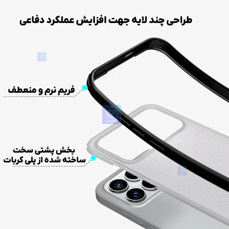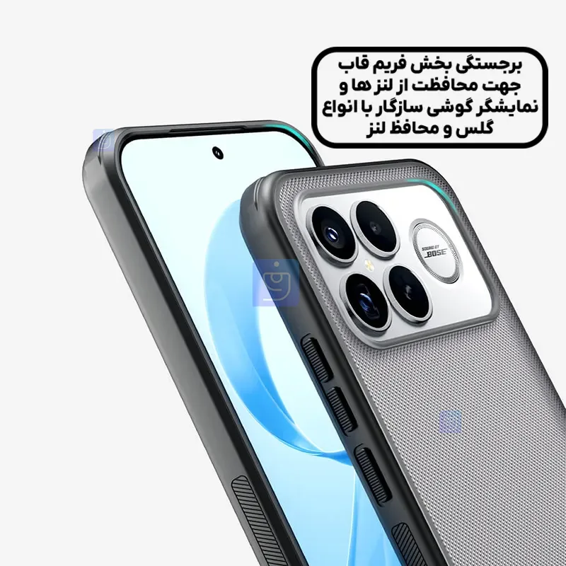 سطح قاب Redmi K90 Pro Max مدل Super Frosted Shield Pro Clear case به صورت مات با استفاده از نقاط ریز و برحسته طراحی شده است، این نقاط علاوه بر زیبایی قاب باعث می شوند هنگام کار با گوشی هیچگونه لک و چربی روی سطح قاب جذب نشود و از ظاهر شدن اثر انگشت روی آن جلوگیری می کند همچنین سبب ایجاد اصطکاک بین دست و قاب می شوند تا از لیز خوردن گوشی جلو گیری شود .