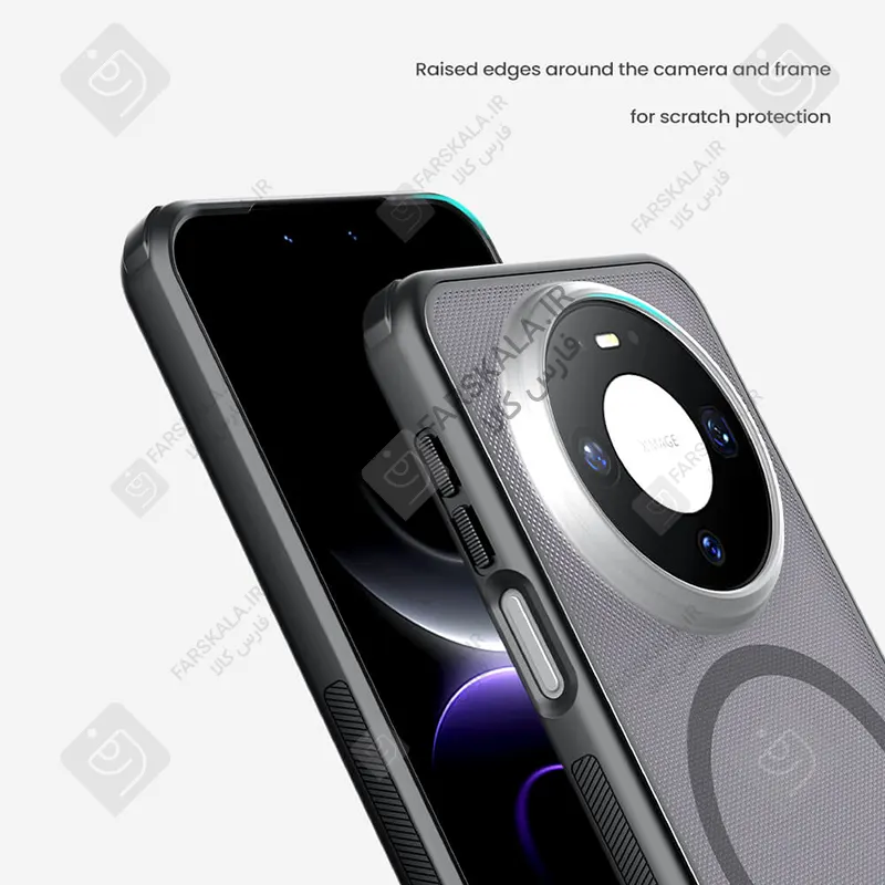 در طراحی قاب گوشی Mate 80 مدل Super Frosted Shield Pro Magnetic Clear case قسمت لنز دوربین نسبت به سایر بخش های قاب برجستگی دارد که این امر سبب می شود تا با قرار گرفتن گوشی روی سطوح مختلف دوربین پشتی گوشی تماس کمتری با سطح داشته باشد، از این رو تا حد زیادی از ضربه دیدن و خط و خش برداشتن دوربین جلوگیری می شود .