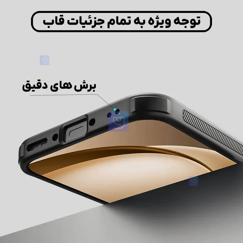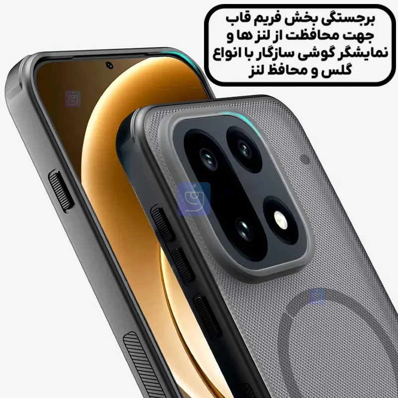 در طراحی قاب گوشی وان پلاس 15 مدل Super Frosted Shield Pro Magnetic Clear case قسمت لنز دوربین نسبت به سایر بخش های قاب برجستگی دارد که این امر سبب می شود تا با قرار گرفتن گوشی روی سطوح مختلف دوربین پشتی گوشی تماس کمتری با سطح داشته باشد، از این رو تا حد زیادی از ضربه دیدن و خط و خش برداشتن دوربین جلوگیری می شود .