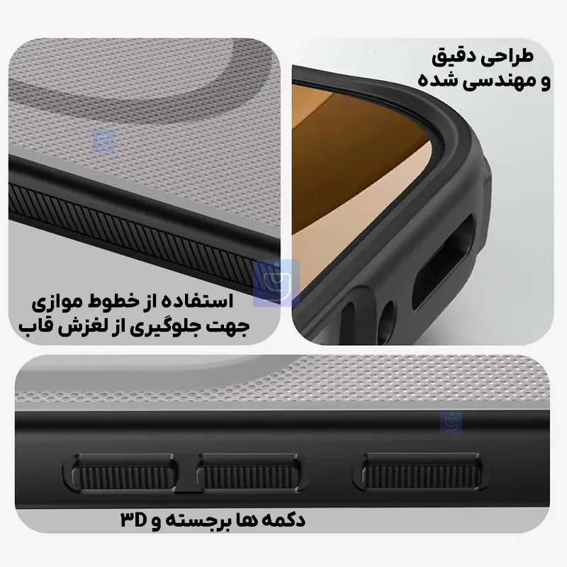 برای دسترسی راحت به پورت ها و لنز دوربین این بخش ها با استفاده از شیار های دقیق و منظم توسط دستگاه های پیشرفته CNC برش خورده اند تا کاربر بدون هیچ محدودیتی از آن ها استفاده کند.