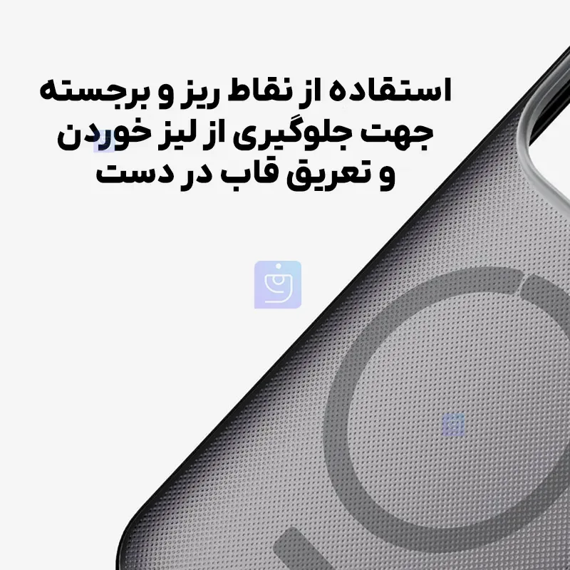 درون قاب از آهن ربا های به هم پیوسته دایره ای شکل استفاده شده که به کاربر امکان شارژ به صورت بی سیم را می دهد، به این صورت که برای شارژ بی سیم دیگر نیاز به جدا کردن قاب از گوشی نیست و همزمان با استفاده از قاب می توانید به صورت مگ سیف گوشی را شارژ کنید همچنین با این قاب بدون نیاز به اضافه کردن قطعه فلزی جداگانه می توانید گوشی خود را به هولدر های مگنتی متصل کنید .