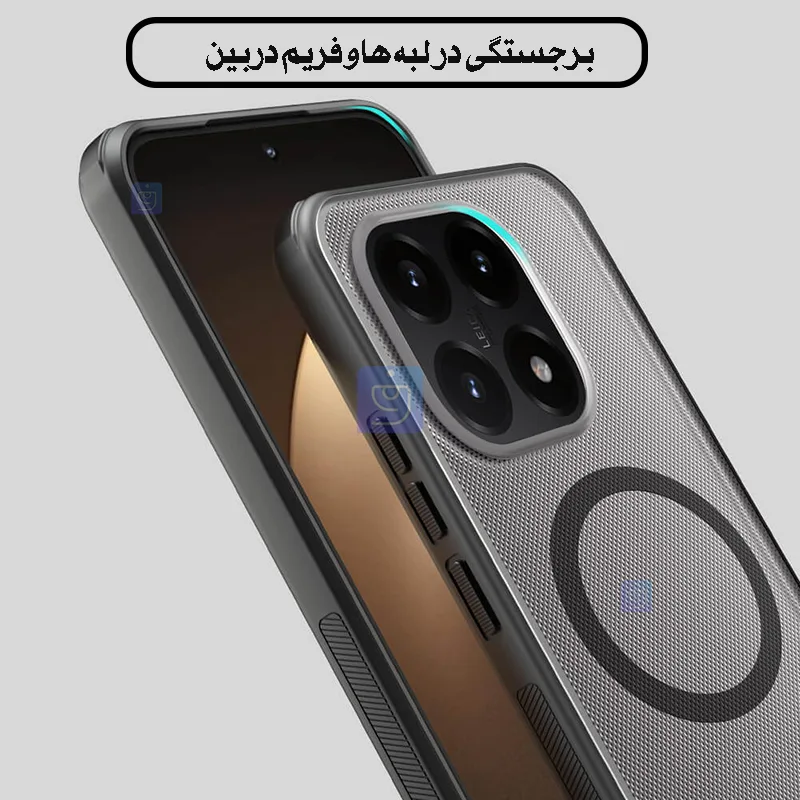 در طراحی قاب گوشی شیائومی 15T مدل Super Frosted Shield Pro Magnetic Clear case قسمت لنز دوربین نسبت به سایر بخش های قاب برجستگی دارد که این امر سبب می شود تا با قرار گرفتن گوشی روی سطوح مختلف دوربین پشتی گوشی تماس کمتری با سطح داشته باشد، از این رو تا حد زیادی از ضربه دیدن و خط و خش برداشتن دوربین جلوگیری می شود .
