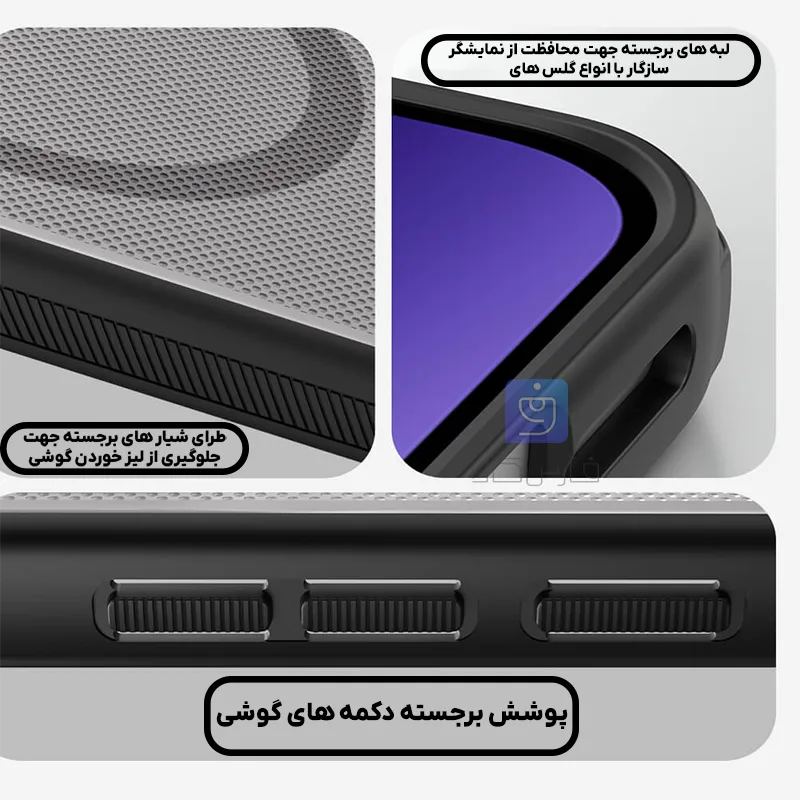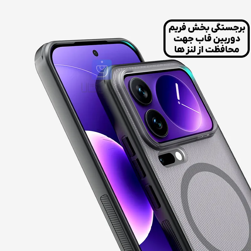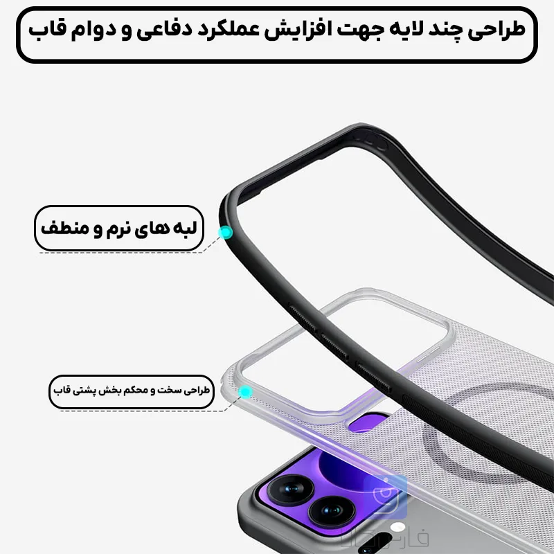 در طراحی قاب گوشی شیائومی 17 پرو مکس مدل Super Frosted Shield Pro Magnetic Clear case قسمت لنز دوربین نسبت به سایر بخش های قاب برجستگی دارد که این امر سبب می شود تا با قرار گرفتن گوشی روی سطوح مختلف دوربین پشتی گوشی تماس کمتری با سطح داشته باشد، از این رو تا حد زیادی از ضربه دیدن و خط و خش برداشتن دوربین جلوگیری می شود .