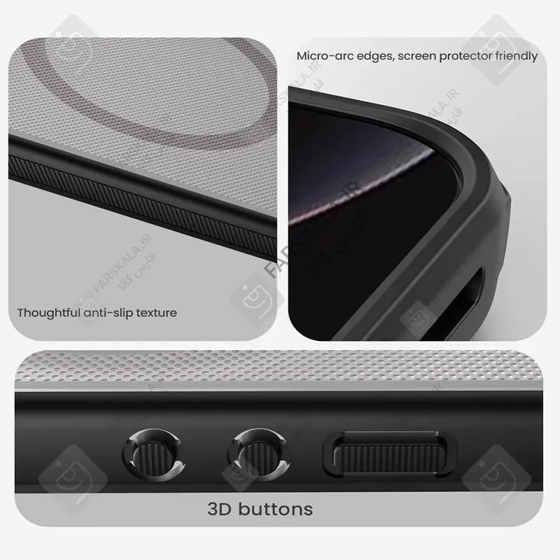 درون قاب از آهن ربا های به هم پیوسته دایره ای شکل استفاده شده که به کاربر امکان شارژ به صورت بی سیم را می دهد، به این صورت که برای شارژ بی سیم دیگر نیاز به جدا کردن قاب از گوشی نیست و همزمان با استفاده از قاب می توانید به صورت مگ سیف گوشی را شارژ کنید همچنین با این قاب بدون نیاز به اضافه کردن قطعه فلزی جداگانه می توانید گوشی خود را به هولدر های مگنتی متصل کنید .