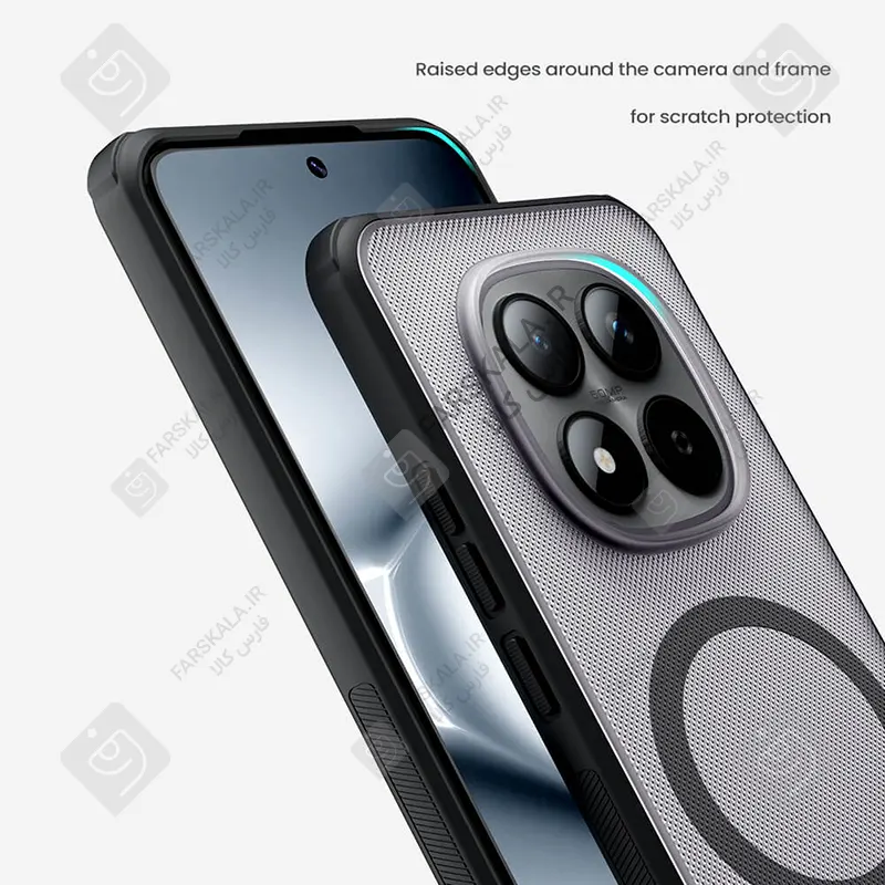 در طراحی قاب گوشی شیائومی نوت 15 پرو پلاس مدل Super Frosted Shield Pro Magnetic Clear case قسمت لنز دوربین نسبت به سایر بخش های قاب برجستگی دارد که این امر سبب می شود تا با قرار گرفتن گوشی روی سطوح مختلف دوربین پشتی گوشی تماس کمتری با سطح داشته باشد، از این رو تا حد زیادی از ضربه دیدن و خط و خش برداشتن دوربین جلوگیری می شود .
