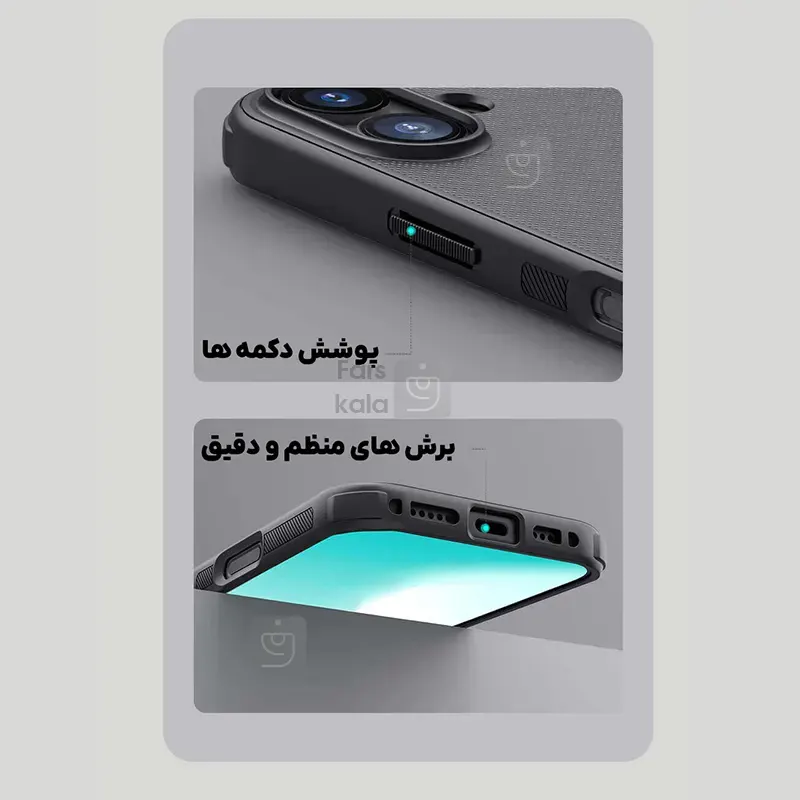 در ساخت این کاور بر روی دکمه های افزایش / کاهش صدا پوششی در نظر گرفته شده است تا از ایجاد خط و خش بر روی دکمه های گوشی جلوگیری شود، هنگام افتادن گوشی از دست چهار گوشه قاب بیشترین احتمال برخورد با زمین را دارند از این رو برند نیلکین چهار گوشه قاب را تقویت کرده است تا عملکرد دفاعی قاب نسبت به ضربات سنگین افزایش چشم گیری داشته باشد .