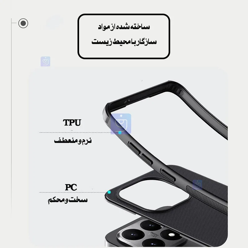 قاب مگ سیف نیلکین Frosted Shield Pro Magnetic شیائومی 15T ساختاری چند لایه دارد و از مواد پلی کربنات در پشت قاب و TPU نرم در لبه های قاب ( بخش بامپر ) ساخته شده است، کیفیت ساخت این محصول به قدری بالا می باشد که در استفاده طولانی مدت به هیچ عنوان تغییر رنگ نمی دهد و به طور کامل ساختار خود را حفظ می کند. پوشش کامل تمام بخش های پشتی و دور تا دور گوشی و ابعاد منطبق بر گوشی به طوری که هنگام استفاده گوشی به هیچ عنوان درون آن نلغزد باعث شده تا این محصول یکی از بهترین گزینه ها برای محافظت از گوشی در برابر ضربه و خط و خش باشد.