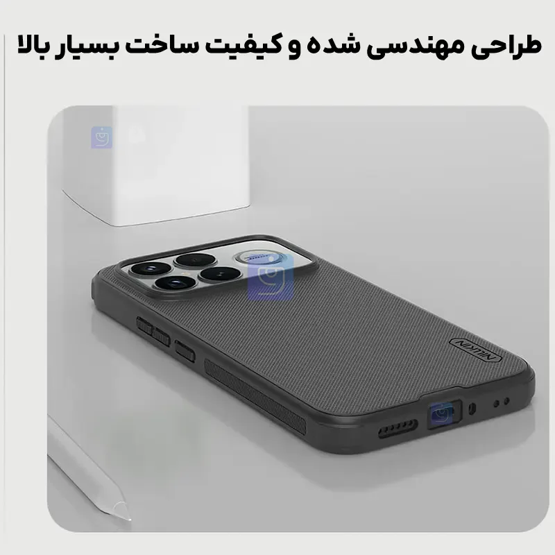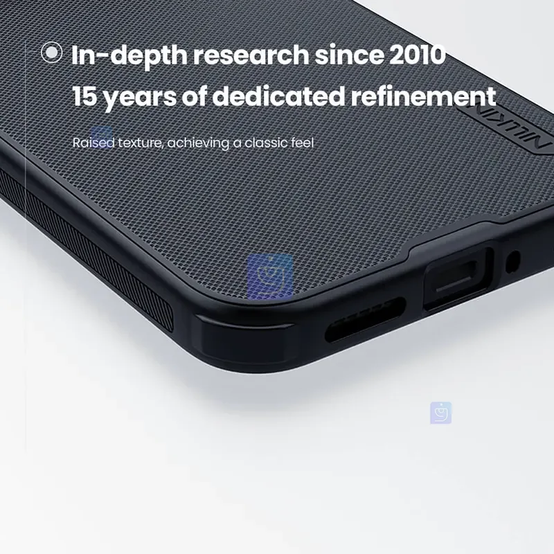 برند نیلکین در لبه های قاب ( بخش بامپر ) از خطوط موازی و برجسته استفاده کرده است تا با ایجاد اصطکاک کافی بین دست و قاب از لیز خوردن گوشی از دست هنگام کار جلوگیری شود همچنین استفاده از مواد اولیه بسیار با کیفیت در کنار طراحی مهندسی شده سبب شده است تا قاب فراستد شیلد پرو به یک محصول تمام عیار برای محافظت از تمام بخش های گوشی تبدیل شود تا با نصب آن گوشی در یک محیط ایمن قرار گیرد و دیگر نگرانی بابت آسیب رسیدن به گوشی نداشته باشید .